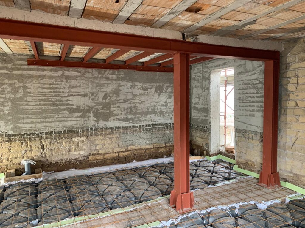 La fase strutturale è stata il momento più delicato di questo intervento. Il fabbricato, in stato di forte abbandono, ha richiesto importanti opere di consolidamento e miglioramento sismico, seguite con grande attenzione da progettisti e impresa.